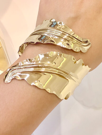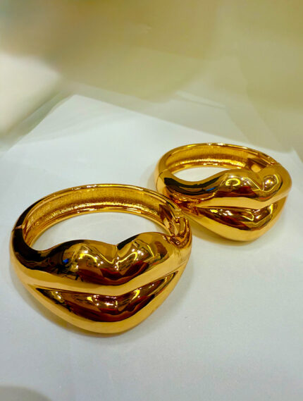 Turn heads with this bold gold-plated bangle featuring a sculptural lips motif, a statement piece that blends playful charm with high-fashion elegance.