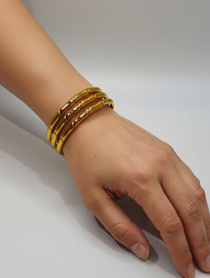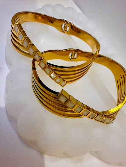 Elevate your traditional and modern outfits with this premium gold-plated kada pair featuring a striking black enamel center design. Perfect for weddings, festivals, and special occasions.