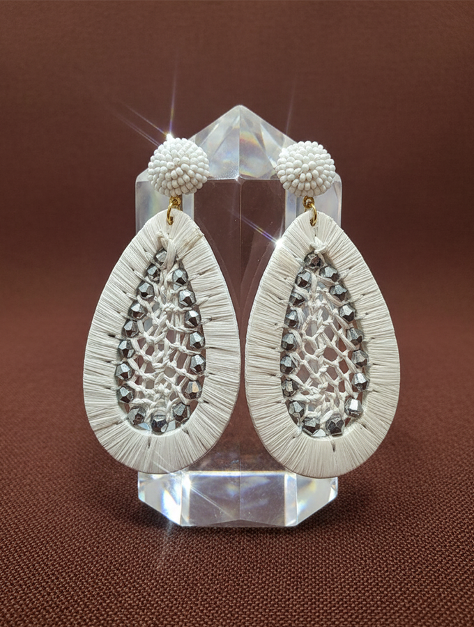 Be the first to review “White Teardrop Beaded Earrings with Textured Studs”